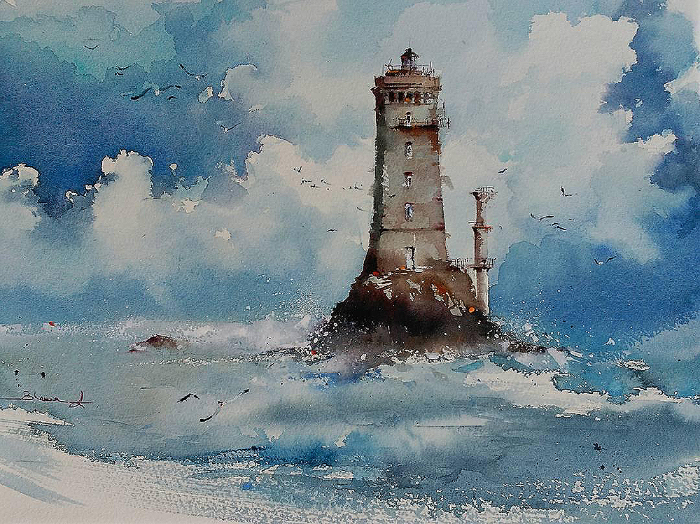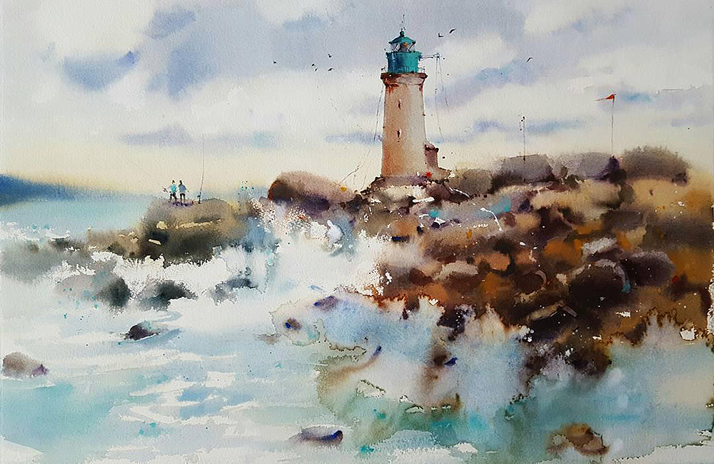 یکی از موضوعات مورد علاقه من دریا است. همچنین دوست دارم از فانوس دریایی نقاشی بکشم که نور آن با قدرت از دوردیده می شود.